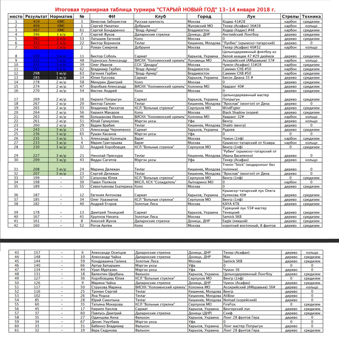 4.5 По завершении 2-х раундов (60 выстрелов) результаты стрельб в каждом клубе оформляются в протоколы результатов стрельбы (см приложение) и направляются в клуб-организатор (Клуб «Добрыня», г. Москва на почту archeryring@list.ru ), где сводятся в общую турнирную таблицу. Протоколы на местах оформляются в электронной таблице (Exсel). Шаблон которой будет разослан ответственным в клубах-участниках за день до соревнований.