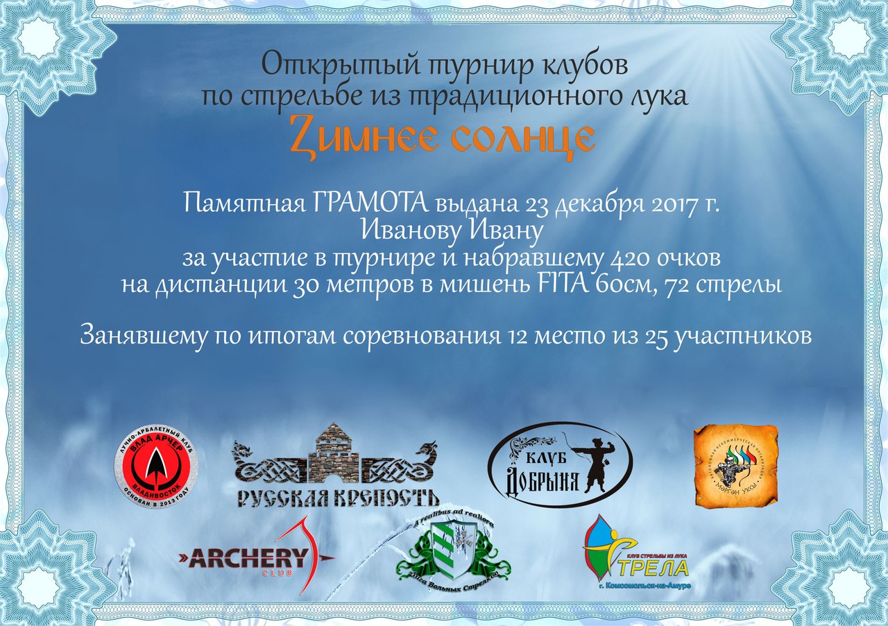 5.1 Победители турнира награждаются грамотами, которые по электронной почте будут разосланы Руководителям клубов, где она распечатывается и вручается победителю.